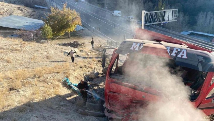 Malatya'nın Darende ilçesinde freni patlayan kamyonun sürücüsü, yol kenarındaki kaçış rampasına girerek, olası bir faciaya engel oldu.