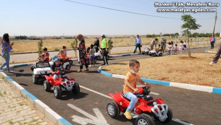 Adıyaman'ın Kahta ilçesinde Çocuk Trafik Eğitim Parkı ilk minik misafirleri olan Sabiha Gökçen Anaokulu öğrencilerini ağırladı.