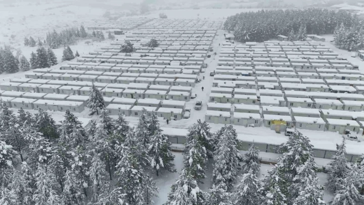 Kar yağışıyla birlikte havadan görüntülenen ilçede yetkililer sürücüleri ve vatandaşları kar yağışı nedeniyle dikkatli olmaları konusunda uyardı.