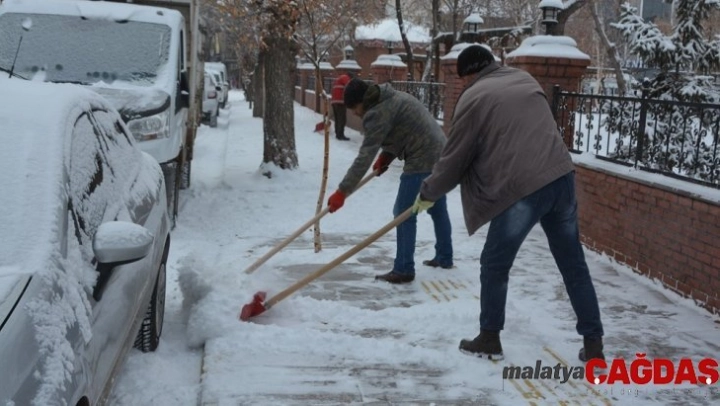 Kar yağışının ardından vatandaşlarımızın sokaklarda yürümekte zorluk yaşamamaları için temizlik ekiplerimiz kaldırımlarda da kar küreme çalışmalarını sürdürüyor. Temizleme çalışmalarının ardından buzlanmalara karşı ana artereler ve rampalı yollara tuzlu kum çalışmaları başlattık ve hali hazırda bu çalışmalarımızı sürdürüyoruz' dedi.