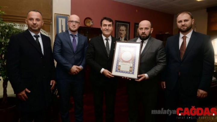 Karadağ Diyanet İşleri Başkanı Rıfat Feyziç ile beraberindeki heyet, Osmangazi Belediye Başkanı Mustafa Dündar'ı ziyaret etti.