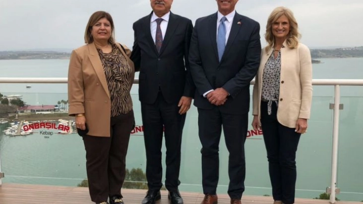 Eşi Cherly Flake ile birlikte Başkan Karalar ve eşi Nuray Karalar'ı ziyaret eden Jeff Flake, kentle ilgili bilgi aldı.