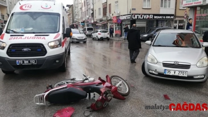 Karaman'da motosikletin otomobile yandan çarpması sonucu meydana gelen trafik kazasında 1 kişi yaralandı.
