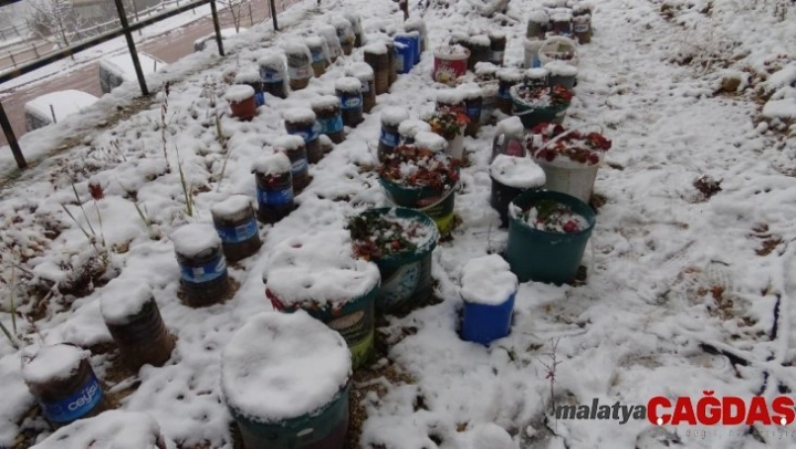Karaman'da sabah saatlerde etkili olan kar yağışı kentin yüksek kesimlerini beyaza bürüdü.