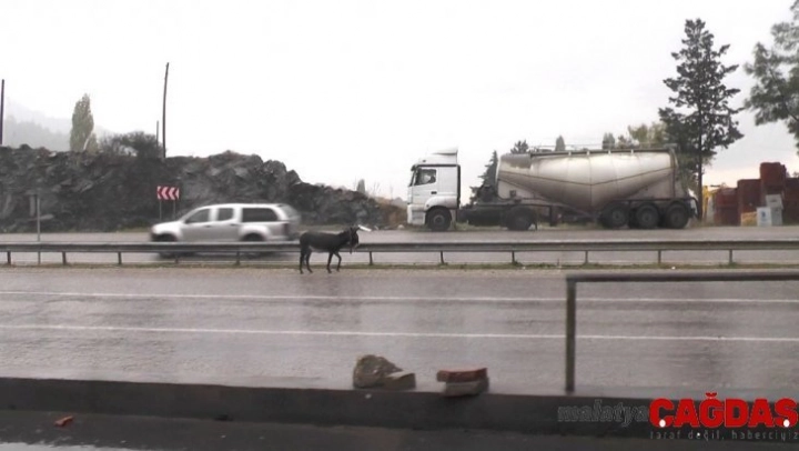 Karayolundaki başıboş eşek sürücülere zor anlar yaşattı