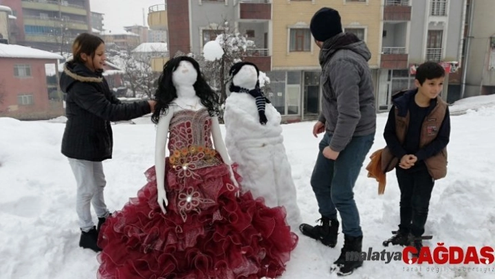Gençlerden Amed Taş, karın keyfini çıkarmak için kardan damat ve gelin yaptıklarını belirterek, 'Ablam ve ağabeyimle birlikte bunları yaptık. Bunları yapmak için 1 saat uğraştık. Güzel bir şey ortaya çıktı. Takı da taktık' dedi.