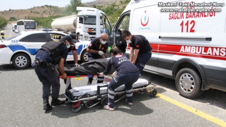 Olay, Elazığ- Malatya Karayolu 36. kilometresi Yalın Damlar Köyü mevkiinde meydana geldi. Edinilen bilgiye göre, İstanbul'da yaşayan ziyaret için köyüne gelen 3 çocuk sahibi Mikail ve Emine Bay çiftine, minibüsten inip karşıdan karşıya geçmeye çalıştığı sırada S.D. idaresindeki 23 HP 993 plakalı tır çarptı. Kazada, 58 yaşındaki Emine Bay olay yerinde hayatını kaybederken eşi ise hafif yaralandı. Haber verilmesi üzerine olay yerine sağlık, polis ve jandarma ekipleri sevk edildi. Yaralı, ambulansla hastaneye kaldırılarak tedavi altına alındı.
