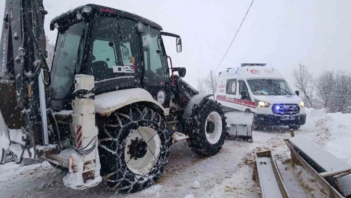 Karla kaplı yolda kalan ambulansı ekipler kurtardı