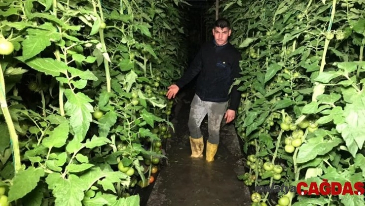 2 dönüm serasına komple su girdiğini söyleyen üretici Osman Güzeloğlu, öğleden buyana bardaktan boşanırcasına yağan yağmur sebebiyle henüz kızarmakta olan 2 dönümde ekili domatesin zarar gördüğünü söyledi.