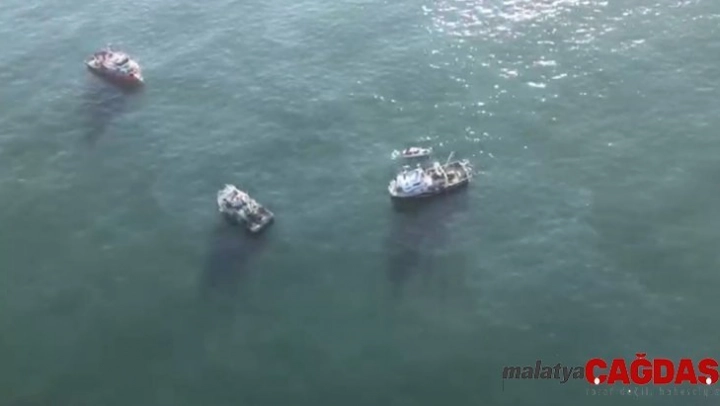 İstanbul Boğazı'nda Rus bayraklı bir tanker ile Türk bayraklı trol teknesinin çarpışmasında kaybolan 3 kişinin arama çalışması havadan görüntülendi.