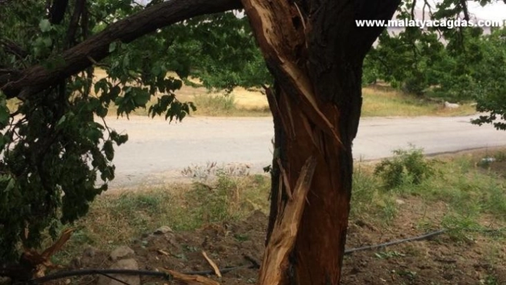 Malatya'nın Darende İlçesi'nde kayısı bahçesine düşen yıldırım bazı ağaçlara zarar verdi.