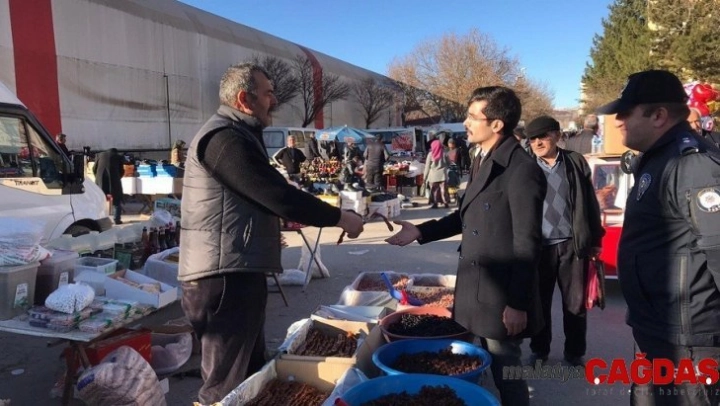 Malatya'nın Doğanşehir ilçesinde pazar esnafı denetlendi.
