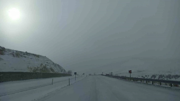 Sivas'ın Gürün ilçesinde yoğun kar yağışı nedeniyle Kayseri-Malatya kara yolu araç trafiğine kapatıldı.