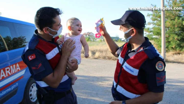 Elazığ'da iki aracın karıştığı kazada 9 aylık minik Zeynep'in annesi yaralanınca, jandarma ekipleri bebekle ilgilenip oyun oynadı.