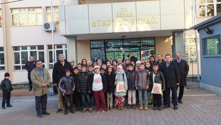 Atatürk İmam Hatip Ortaokulu ve Musa Coşkun Ortaokulundan 23 öğrenci, yakınları ve öğretmenler, Keban Hükümet Konağı önünde bir araya geldi.
