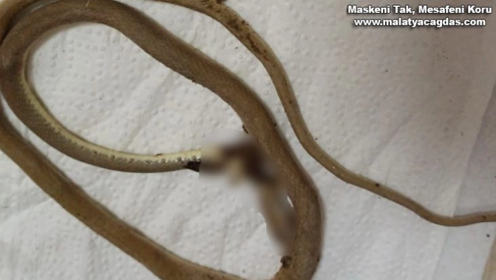 Adıyaman'ın Kahta ilçesinde bir kişi, kendisini ısıran yılanla beraber hastaneye gitti.