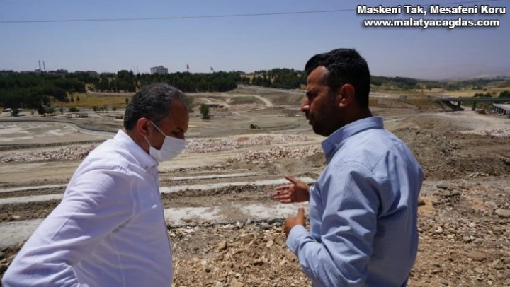 Adıyaman Belediye Başkanı Süleyman Kılınç, yapımı devam eden Millet Bahçesinde incelemelerde bulundu.