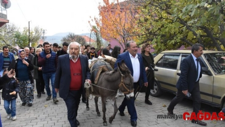 Aydın'ın Germencik ilçesindeki Selatin Kütüphanesi'nin açılışını Germencik Belediye Başkanı Fuat Öndeş yaparken, kitaplar kütüphaneye eşekle getirildi.