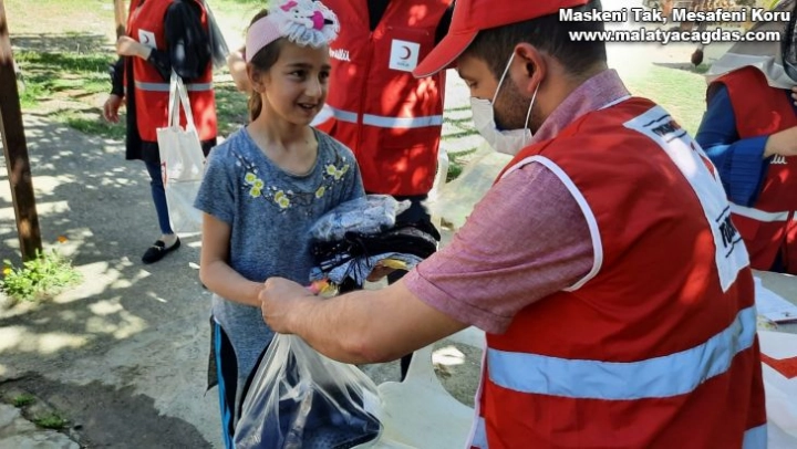 Ramazan ayı boyunca ihtiyaç sahibi ailelere gıda kolisi, kavurma, temizlik, hijyen malzemesi ve kıyafet yardımı yapan Kızılay Yeşilyurt Şubesi bayram öncesi de ilçeye bağlı Şahnahan mahallesinde çocuklara bayramlık dağıttı.
