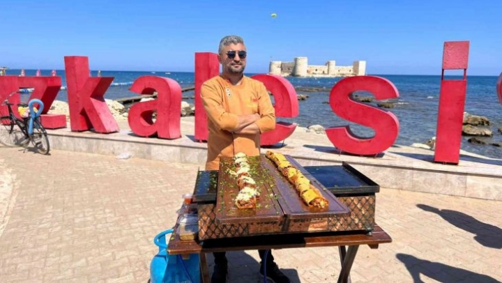 Kentte yaptığı metrelik 'Piton Döner' ile ünlenen ve yurt dışına şube açmaya hazırlanan Mehmet İkram Taş, Mersin'in ünlü Kızkalesi sahiline gitti. Önce Kızkalesi'ni gezen Taş, daha sonra Kızkalesi sahilinde metrelik 'Piton Döner' yapıp vatandaşlara ikram etti.