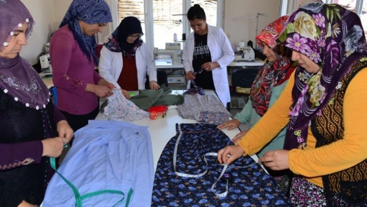 Yeşilyurt Belediyesi Konak Kültür ve Sanat Merkezinde açılan biçki-dikiş kursuna katılan ev hanımları bir yandan geleneksel el sanatlarının yaşatılması noktasında sorumluluk üstlenirken, diğer taraftan el emeği göz nuru eserlerinin satışını yaparak aile bütçelerine katkı sağlıyorlar.