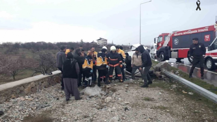 Malatya'da sürücüsünün kontrolünden çıkan otomobil, bariyerlere çarptıktan sonra yan yattı. Kazada 3 kişi yaralandı.