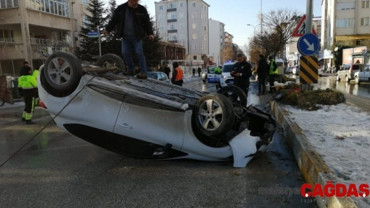 Kontrolden çıkan otomobil takla attı 2 yaralı