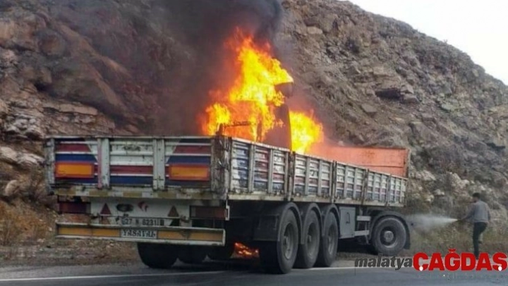 Kontrolden çıkan tır menfeze çarparak alev aldı