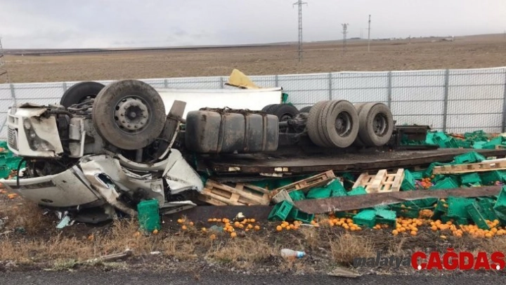 Konya'da portakal yüklü kamyon devrildi: 2 ölü