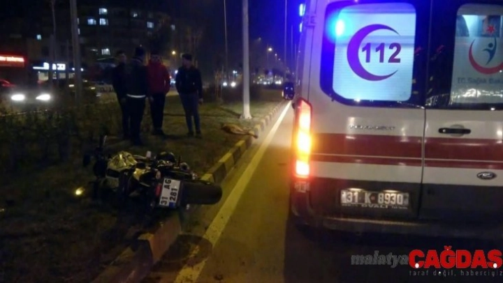Hatay'ın Antakya ilçesinde yola atlayan köpeğe çarpan motosiklet sürücüsü yaralandı, köpek ise telef oldu.