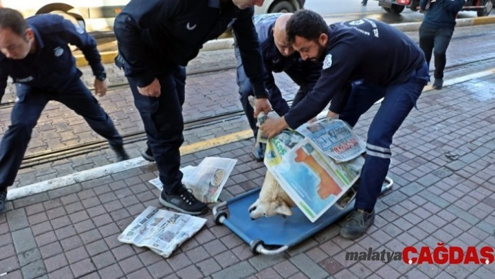 Antalya'da tramvay yolu üzerinde hasta taşıyan ambulans, o sırada önüne çıkan köpeğe çarparak ölümüne neden oldu. Köpeğin 10 yıldır sahipliğini yapan esnaf, üzücü manzarayı görmemek için uzun süre dükkanından çıkmadı.