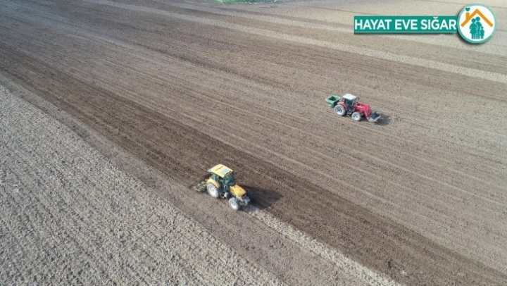 Tohumluk stoklarında sıkıntı olmadığı için tarımsal faaliyetlere aralıksız devam ettiklerini vurgulayan Hacıalibeyoğlu, 'Yaklaşık 4-5 bin dönüm alanda patates, arpa, buğday ekim nöbeti şeklinde üretimimizi yapıyoruz. Ülkemizin içinde bulunduğu durum tabii bizi de olumsuz etkilemedi değil. Hayvan satışında bazı sıkıntılar yaşanıyor. Mezbahalar ve pazarlar kapalı. Bizde korona virüs ile alakalı kendi önlemlerimizi kendimizce alıyoruz. Tohumluk stokumuzla patates, arpa, buğday ve diğer ürünler ile ilgili tohumluk sıkıntımız yok. Zaten devletimizin yüzde 75 bir hibesi var. Hazine arazisi ekilmeyen alanlar ile alakalı. Şuan için tarımın, gıdanın önemini bir kez daha ülke olarak anlamış durumdayız. Çünkü üretmeden özgür olmamız mümkün değil. Dünyanın gıda dar boğazı görünüyor. Ayakta durmamız için üretmemiz lazım. Bizde bu bağlamda üretimlerimize ara vermeden devam ediyoruz. Milletimiz, devletimiz ve ülkemiz için 7-24 çalışmaya devam ediyoruz. Çalışan personelimizden tutun da makinelerimizin dezenfektesine varana kadar hepsi yapılıyor. Hep arazideyiz. Büyükşehirler ile bağlantımız yok. Tohumluk stokumuzda bir sıkıntı olmadığı için bizim faaliyetlerimiz aralıksız devam ediyor. Şuan yazlık ekimi yapıyoruz bu alanda. Yazlık arpa ekimi yapıyoruz. Vatandaşlarımız müsterih olsunlar. Biz onlar için 7-24 üretmeye devam ediyoruz' dedi.
