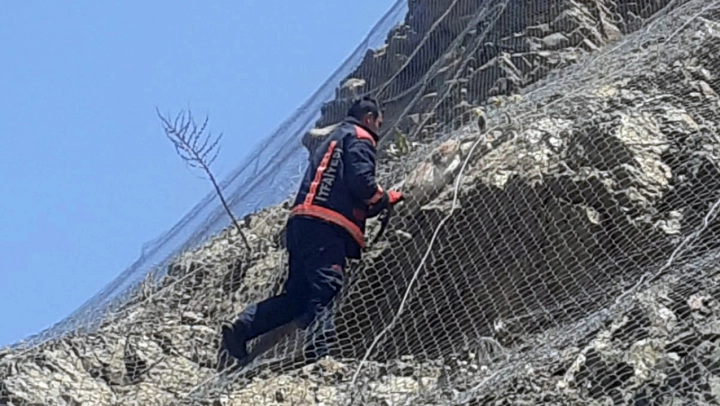 Pütürge ilçesine bağlı Poskıran Mahallesi'nde yola kaya parçaları düşmemesi için yamaç araziye serilen koruma teline 2 yaban keçisi takıldı.