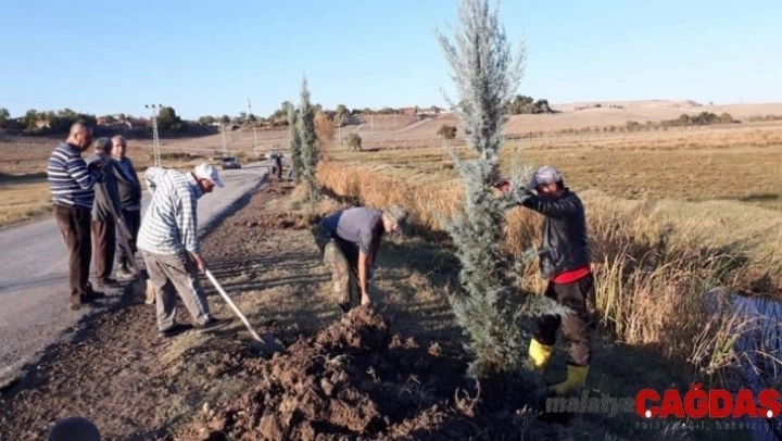 Köy halkı kendi imkanlarıyla 300 fidan dikti