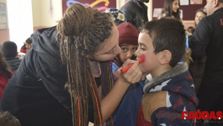 Burada öğrencilerle kartopu oynayıp, öğrencilerin kar neşesine ortak olan ekip, daha sonra öğrencilere sınıflarda gösteriler yaparak, elbise, oyuncak gibi çeşitli hediyeler dağıttı. Öğrencilerin yüzlerini boyayıp, okula kütüphane sınıfı kuran ekip, öğrencilere şarkı söyleyip, tiyatro ve üniversite hakkında çeşitli bilgiler aktardı.