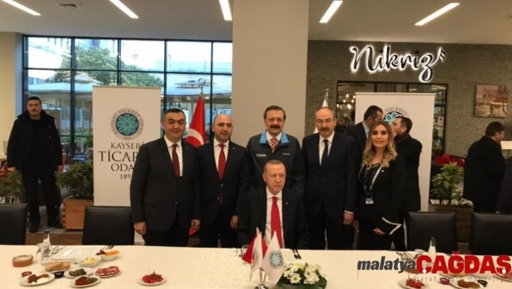 TOBB ve TOGG Başkanı M. Rifat Hisarcıklıoğlu'nda yer aldığı heyeti, Kayseri Ticaret Odası Başkanı Ömer Gülsoy, TOBB Yönetim Kurulu Üyesi aynı zamanda Kayseri Sanayi Odası Başkanı Mehmet Büyüksimitçi ve Kayseri Ticaret Borsası Başkanı Recep Bağlamış karşılayarak, Kayseri lezzetlerinden ikram etti.