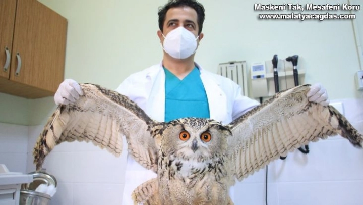 Elazığ'da kanadında yumuşak doku zedelenmesi nedeniyle uçamaz halde vatandaşlar tarafından bulunan nesli tükenme tehlikesi altında olduğu öğrenilen Kulaklı Orman Baykuşu bulunarak, tedavi altına alındı.