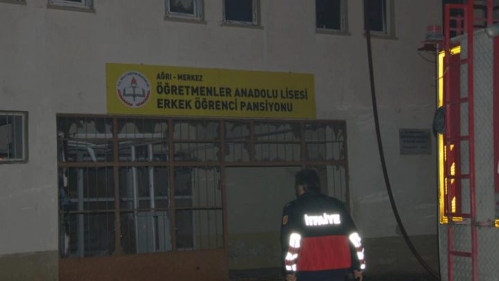 Ağrı'da depreme dayanıklı olmadığı için kullanılmayan eski öğrenci yurdu binasında çıkan yangın itfaiye ekiplerince söndürüldü