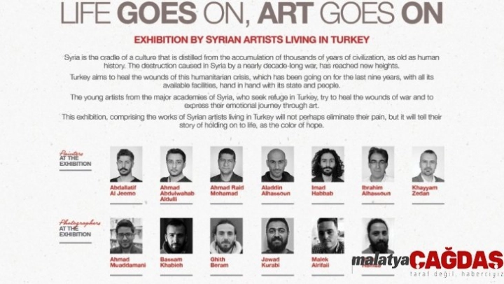 'Hayat Devam Ediyor, Sanat Devam Ediyor' sergisi kapsamında, Suriye'nin önemli sanat akademileri ve okullarından mezun olmuş Abdallatif Al Jeemo, Ahmad Abdulwahab Aldulli, Ahmad Raid Mohamad, Aladdin Alhassoun, Imad Habbab, Ibrahim Alhassoun, Khayyam Zedan, Ahmad Muaddamani, Bassam Khabieh, Ghith Beram, Jawad Kurabi, Malek Alrifaii, Noor Hamza'ya ait 14 yağlıboya resim ve 14 fotoğraf yer alacak.