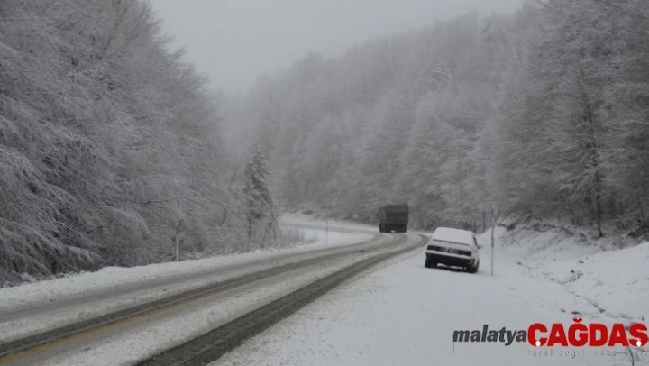 Kütahya'nın Domaniç ilçesinde gece saatlerinde başlayan kar yağışı sürücülere zor anlar yaşatıyor.