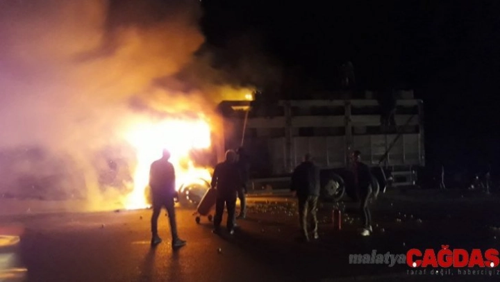 Edinilen bilgiye göre, Mersin merkezden Mezitli ilçesi istikametine seyir halindeki 33 ELN 90 plakalı limon yüklü kamyon, Kuyluk mevkiinde motor kısmından alev alarak yanmaya başladı. Alevleri fark eden sürücüsü tarafından yol kenarına çekilerek durdurulan kamyondaki yangın, kısa sürede büyüdü. Yangına, ilk etapta yoldan geçen vatandaşlar, ardından da Mersin Büyükşehir Belediyesi'ne bağlı itfaiye ekipleri müdahale etti. Yangın, uzun uğraşlar sonucu kontrol altına alınarak söndürülürken, araç kullanılamaz hale geldi.