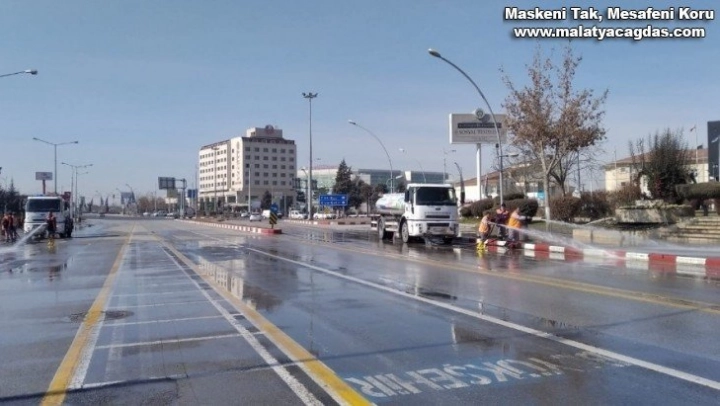 Malatya Büyükşehir Belediyesi Çevre Koruma ve Kontrol Daire Başkanlığına bağlı ekipler 2 günlük sokağa çıkma yasağının uygulandığı günleri değerlendirerek sorumluluk alanı içerisinde bulunan cadde ve sokaklarda yıkama çalışması gerçekleştirdi.