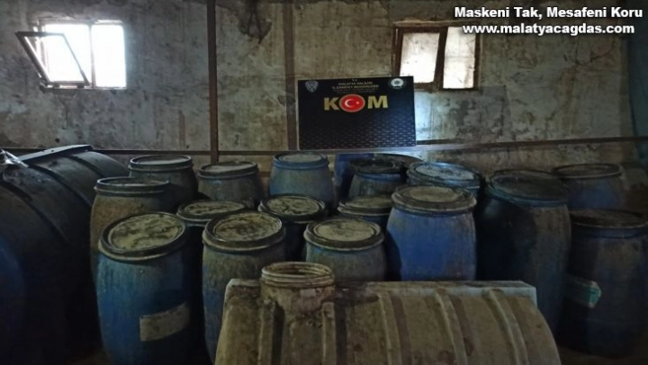 Malatya'da polis tarafından yapılan operasyonda 3 bin 688 litre el yapımı boğma rakı ele geçirildi.