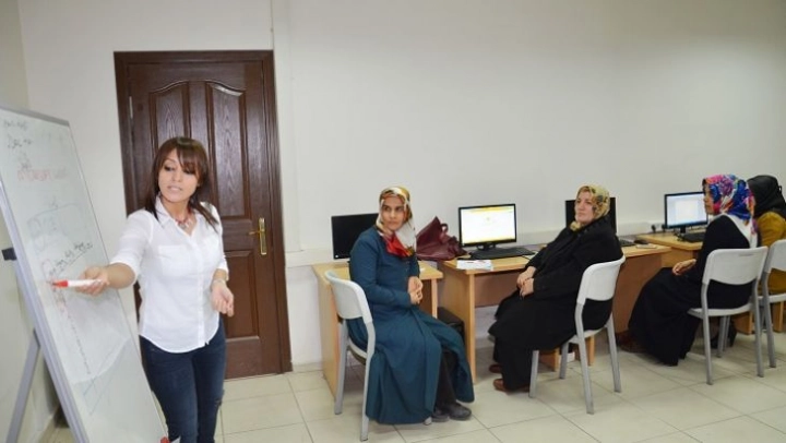 Malatya Büyükşehir Belediyesi tarafından Salköprü Semt Konağı'nda açılan bilgisayar i̇şletmenliği kursuna kadınlar ilgi gösteriyor.
