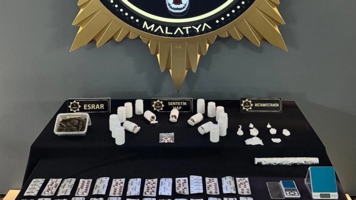 Malatya'da, İl Emniyet Müdürlüğü Narkotik Suçlarla Mücadele Şube Müdürlüğü ekipleri tarafından 'torbacı' olarak tabir edilen sokak satıcılarına yönelik 3 ay süren teknik ve fiziki takip sonrasında operasyon düzenlendi. Projeli dosya çerçevesinde belirlenen adreslere eş zamanlı düzenlenen operasyonda bin 340 adet sentetik ecza hap, 140 gram esrar, 48,5 gram metamfetamin ve 2 adet hassas terazi ele geçirildi.