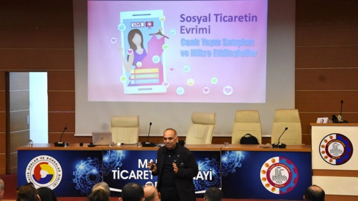 Konferansın açılış konuşması yapan Malatya Ticaret ve Sanayi Odası (MTSO) Yönetim Kurulu Başkan Yardımcısı Basri İlhan, dünyanın ve Türkiye'nin e-ticaret hacminden bahsetti. İlhan, 'Dünyada ticaret anlayışı artık dijitale doğru evriliyor. Özellikle yapay zekanın hayatımıza girmesiyle e-ticaret daha fazla tercih edilir hale geldi. 2020 yılında yaşadığımız pandemi dönemiyle başlayan e-ticaret, bugün geleneksel ticareti gölgeliyor. 2022 yılında 5 buçuk trilyon dolar olan küresel e-ticaret hacmi geçen yıl itibarıyla 7 trilyon dolara yükseldi. 2026'da 8 trilyon doları aşması bekleniyor. Ülkemize baktığımızda e-ticaret hacmi 2024'te bir önceki yıla göre yüzde 61 artarak 3 trilyon lirayı aştı. Bu rakam 90 milyar dolara tekabül ediyor. Küresel ticaret değişirken biz de bu değişimin karşısında duramayız. Genç ve dinamik bir nüfusa sahip olmamız, yoğun bir şekilde mobil cihaz kullanılması ve sosyal medyanın yaygınlığı e-ticaretin ufkunun açık, geleceğinin parlak olduğunu gösteriyor' diye konuştu.