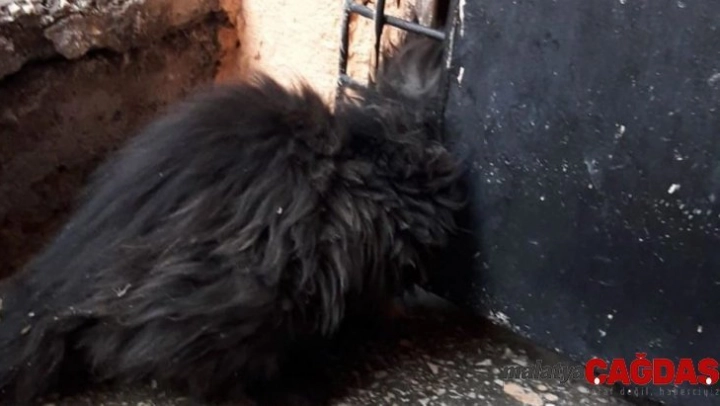 Elazığ'da mazgala kafası sıkışan kedi itfaiye ekiplerinin çalışmasıyla kurtarıldı.