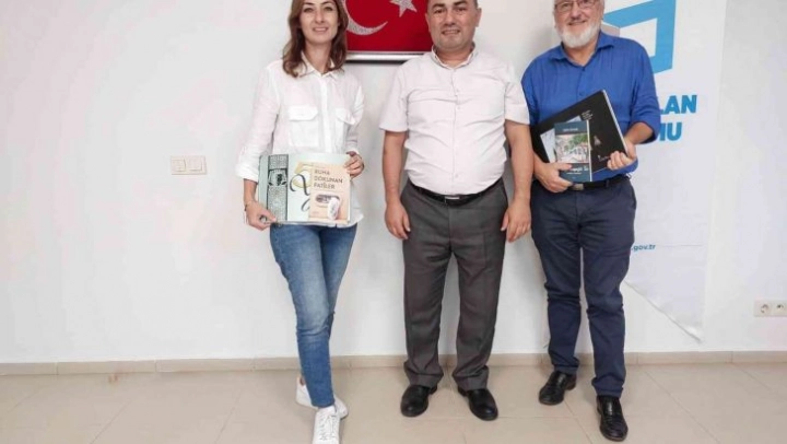 Adana Büyükşehir Belediyesi'nce düzenlenen sempozyum ve sergi nedeniyle Adana'ya gelen İtalyan Sanat Yönetmeni ve Mozaik Sanatçısı Giulio Menossi ve Koordinatör Sanatçı Neriman Güzel, Basın İlan Kurumu Adana Şube Müdürü Çetin Oranlı'yı ziyaret etti.