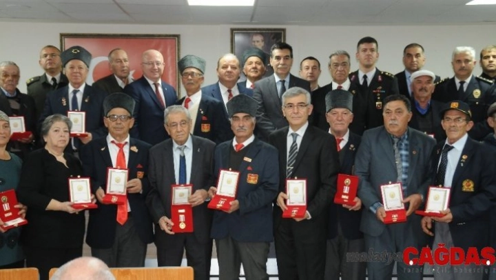 Konuşmaların ardından 33 Kıbrıs Gazisi 'Kıbrıs Barış Harektı Milli Mücadele Madalya ve Beratı'nı Muğla protokolün elinden aldı.
