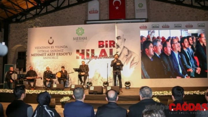 Meram Belediyesi, vefatının 83. yılında istiklal şairi Mehmet Akif Ersoy'u anma programı gerçekleştirdi. Tantavi Kültür ve Sanat Merkezinde gerçekleştirilen programın konukları şair-yazar Serdar Tuncer ve ses sanatçısı, bestekar, Payitaht Abdülhamid dizisinde muallim İsmail Hakkı Bey'i canlandıran Necip Karakaya oldu. 'Bir Hilal Uğruna' isimli programda Serdar Tuncer, Mehmet Akif'in hayatından kesitler sunup şiirlerini okurken, Necip Karakaya ise, Akif'in şiirlerinden bestelenen şarkıları söyledi.